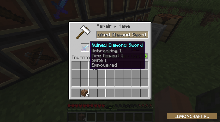 Мод на сломанные предметы Ruined Equipment делает предметы имеющие нулевую прочность разрушенными или дает вам возможность отремонтировать их. Так же вы сможете увековечить данные предметы любым удобным вам способом.