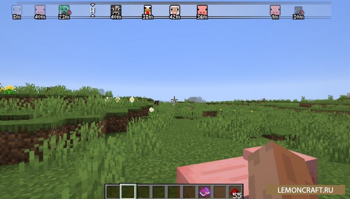 Мод на универсальный компас Advanced Compass добавит в игру новый компас, который будет отображаться в виде горизонтальной полоски в верхней части экрана. Данный компас сможет показать вам, где находятся мобы, игроки, путевые точки и расстояние до этих объектов. Данная панель уже использовалась в некоторых РПГ играх.